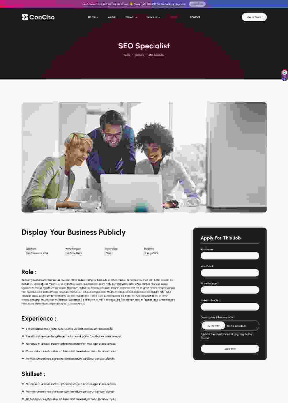 Concho got unlimited post and even changes this on a page-by-page basis! Want one layout for one category, no problem! Create unique Blog, Career, Portfolio pages, and provide the best user experience to the visitors.
