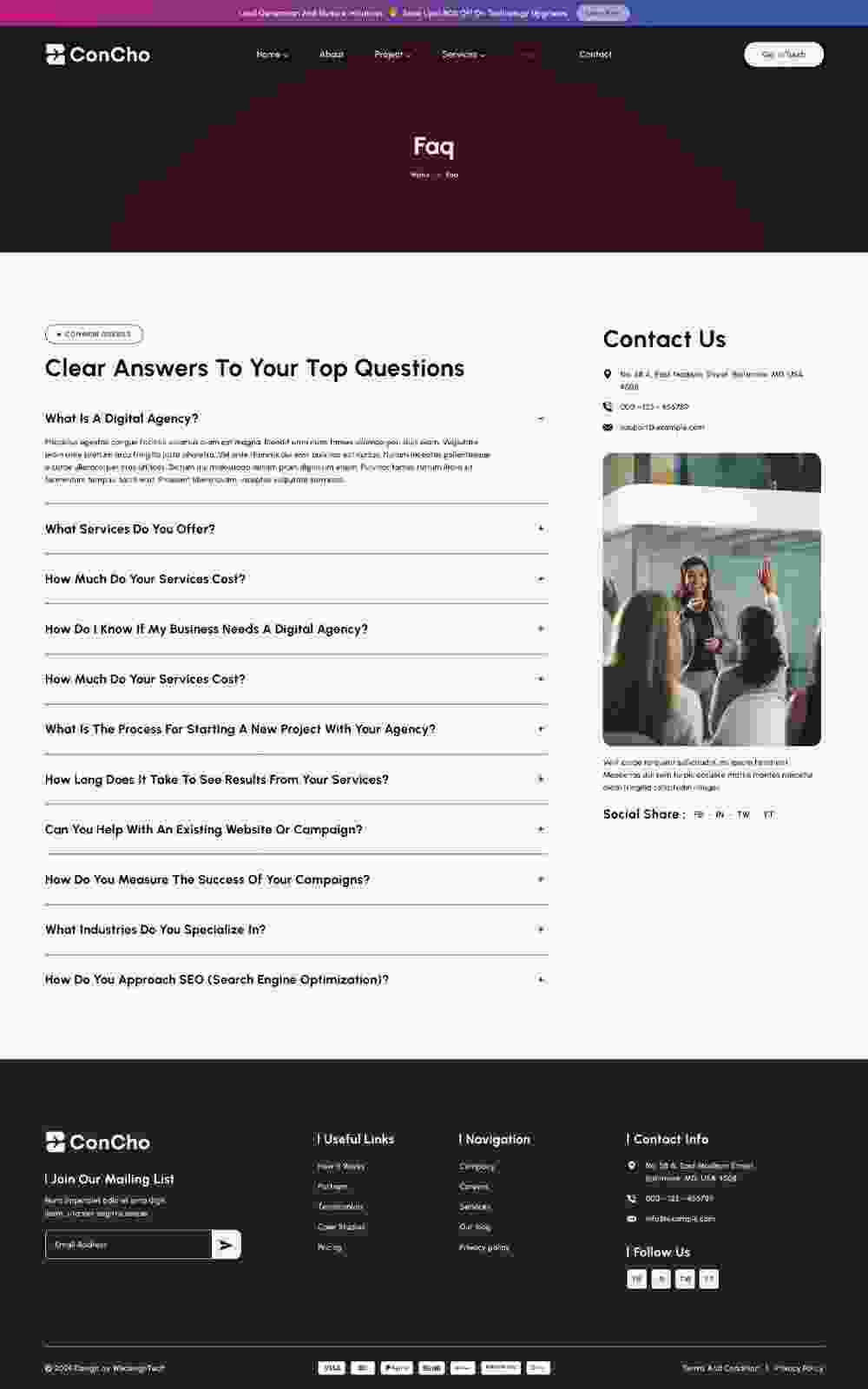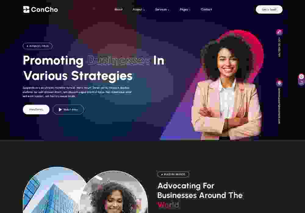 Concho – Creative Business Consultant Website WordPress Theme is a perfect way to showcase the possibilities of your software visually on your web platform. This design is an excellent solution for startups, coworking space, cloud hosting, application, event, business, personal portfolio, services, enterprises, social media marketing, Digital agency, Consulting Business websites, Design Studios and much more. The Theme is fully equipped with pre-made demos, portfolio and blog posts, stylishly designed layouts, and a premium feel.